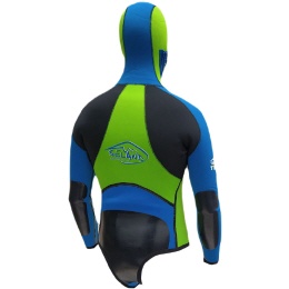 Körperpartie aus 5 mm und die geformten Arme aus 4 mm Neopren. An den Armen wird das sehr abriebfeste -Small Diamond kaschierte Neopren verwendet.