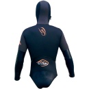 Zweiteiliger Anzug mit Kapuze aus beidseitig kaschiertem 5 mm dickem Neopren.
