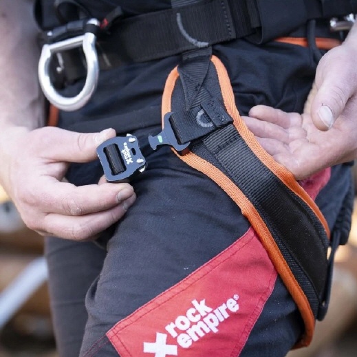 - deutlich farbcodierten großen Schlaufen zum Einhängen größerer Karabiner oder Haken (z. B. beim Arbeiten auf Konstruktionen oder mit einer Fallschutzvorrichtung)