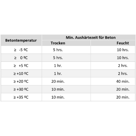 Die Aushärtezeiten beachten.