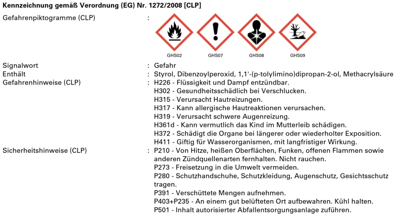 Glasampulle mit Grundkomponenten, kaltaushärtendes Harz und Härter