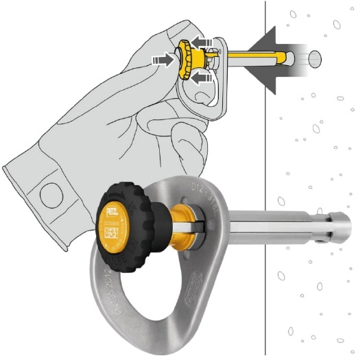 Der entfernbare Bohrhaken aus rostfreiem Stahl kann ohne Werkzeug schnell und einfach gesetzt oder entfernt werden, um ihn erneut zu verwenden. Die Verriegelungsfunktion reduziert das Risiko, dass er ungewollt herausgezogen wird. Eine Verbindungsöse erleichtert das Einhängen des Karabiners. Diese Öse ist groß genug um zwei Karabiner gleichzeitig einzuhängen.