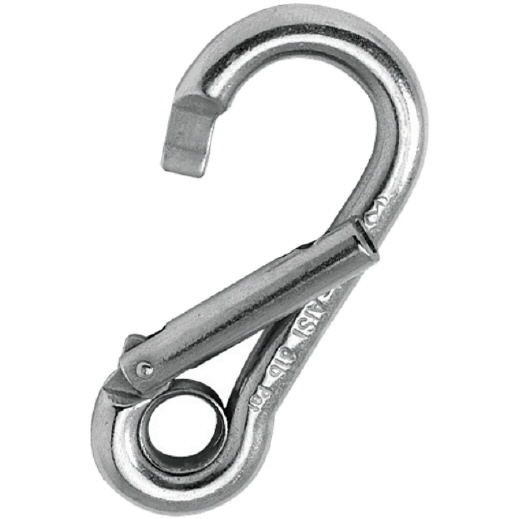 Karabiner aus AISI 316 Edelstahl mit geradem Schnapper, der seitlich öffnet und Öse.