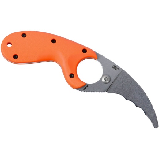 Die gebogene Klinge besitzt eine Schneide mit Veff- Wellenschliff und abgerundeter Spitze.