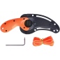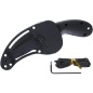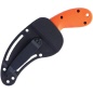 Eine Öse zum Befestigen einer Sicherungsschnur ist vorhanden. Die mitgelieferte Kunststoffscheide aus Nylon kann sehr gut an Bandmaterialien wie Sitzgurt oder Träger vom Sack befestigt werden. Das Messer kan man so immer gut gesichert und sofort Griffbereit tragen.
