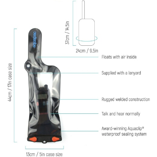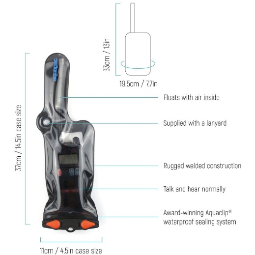 Es besteht kein Empfangsverlust. Benutzen Sie Ihr Funkgerät wie gewohnt im Aquapac. Sprechen und hören Sie und bedienen Sie die Tasten und Potis durch das flexible Material.