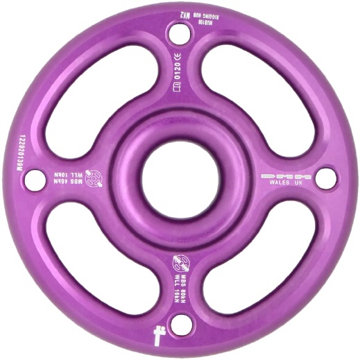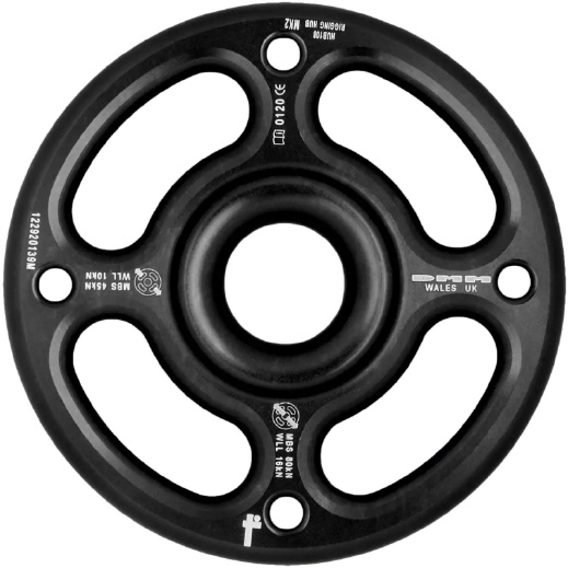 - Das zentrale Loch kann ein laufendes Seil aufnehmen und erleichtert das 3D-Rigging