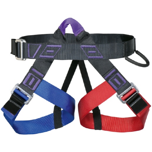 Voll verstellbarer Klettergurt mit Schnellverstellschnallen aus Metall.