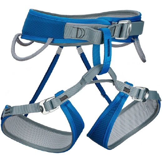 Leichter und komfortabler Sportklettergurt. Voll verstellbar in einer Größe mit drei 20 mm Schnellverstellschnallen. Das Hüftband benötigt nur eine Schnalle, weil es frei im Hüftpolster verläuft und sich der Gurt somit automatisch richtig zentriert. Universalgröße: S-XL. Farbe blau.