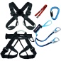 Das komplette Klettersteigset beinhaltet einen Leichtgurt Speedy zusammen mit einem Brustgurt Eight Vario, DynaGo Bandfalldämpfer und Ferrata connect zur einfachen und sicheren Verbindung des Brustgurtes mit dem Sitzgurt. Enthält auch HMS Smart 2T Karabiner.