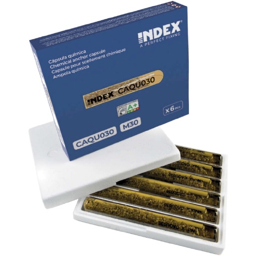 Index Klebekapsel für Klebehaken der in ein Bohrloch eingeklebt wird.