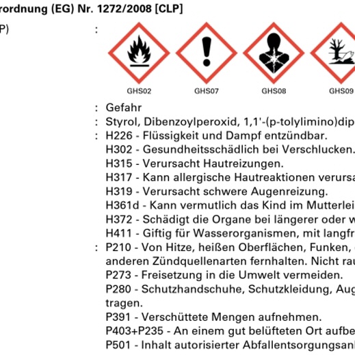 - Nicht für den Kontakt mit Trinkwasser oder Lebensmitteln geeignet