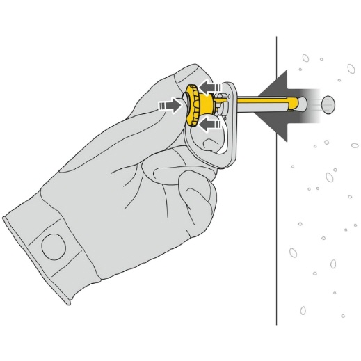 - vollständiges Herausziehen des Ankers durch Druck auf den Entsperrkolben und Ziehen an der Lasche