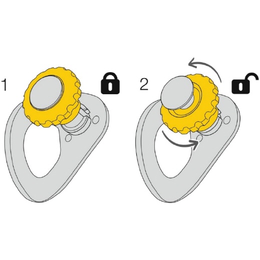 - gebogene Lasche aus Aluminium, die den Karabiner parallel zur Wand hält