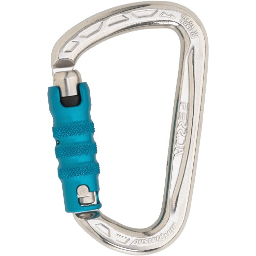 Die Ausführung mit 3-Wege-Autolock bietet ein hohes Maß an Sicherheit. Der Triplelock-Karabiner kann nur durch das gezielte Ausführen von drei aufeinanderfolgenden Aktionen – Anheben, Drehen und Drücken – geöffnet werden. Dadurch wird ein unbeabsichtigtes Öffnen nahezu ausgeschlossen, selbst bei starker Bewegung, Reibung oder Hängenbleiben. Nach dem Loslassen des Schnappers verriegelt dieser automatisch.