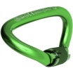 Karabiner mit spezieller, in sich gedrehter, Form, der den Anschlagpunkt um 90° dreht und somit die Zugrichtung und die Belastungsrichtung optimiert werden kann.