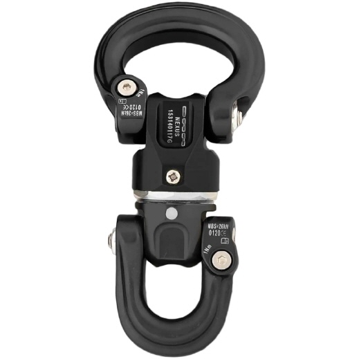 Die Schäkel auf beiden Seiten des Wirbels ermöglichen die Montage an festen Ösen an beiden Enden, wodurch ein Drehelement entsteht, das weniger Höhe in einem System einnimmt als die meisten Verbindungselemente.