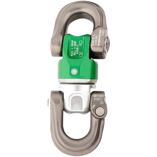 Die Schäkel auf beiden Seiten des Wirbels ermöglichen die Montage an festen Ösen an beiden Enden, wodurch ein Drehelement entsteht, das weniger Höhe in einem System einnimmt als die meisten Verbindungselemente.