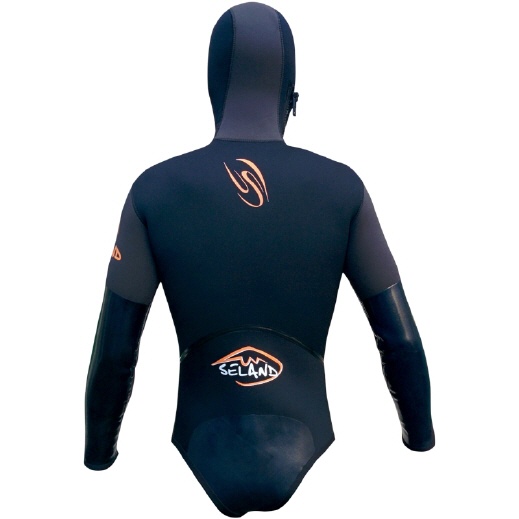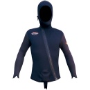 Zweiteiliger Anzug mit Kapuze aus beidseitig kaschiertem 5 mm dickem Neopren.