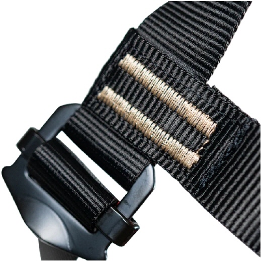 Seine asymmetrische farbige Beinschlaufe ermöglicht eine schnelle visuelle Überprüfung durch die Betreuer, um sicherzustellen, dass der Gurt richtig angelegt ist.