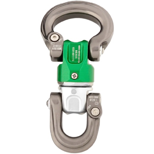 Die Schäkel auf beiden Seiten des Wirbels ermöglichen die Montage an festen Ösen an beiden Enden, wodurch ein Drehelement entsteht, das weniger Höhe in einem System einnimmt als die meisten Verbindungselemente.