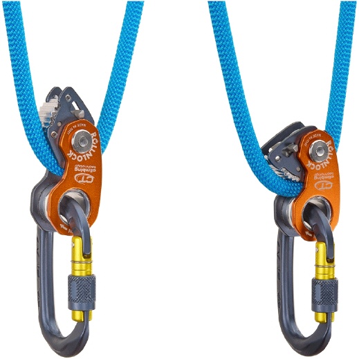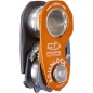 Die Seilklemme kann auch zum Aufsteigen am Seil verwendet werden und blockiert selbst an verschmutzten oder vereisten Seilen. Die Rücklaufsperre kann in geöffneter Position eingerastet werden um das Gerät als einfache Umlenkrolle zu verwenden.