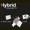 Die ARIA 1R wird mit einem CORE-Akku geliefert und kann dank HYBRID CONCEPT auch mit drei AAA-/LR03-Batterien (nicht enthalten) betrieben werden.