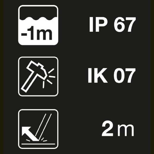 - robuste Bauweise: Die Lampe ist stoßfest (IK07) und sturzfest (bis 2 Meter)
