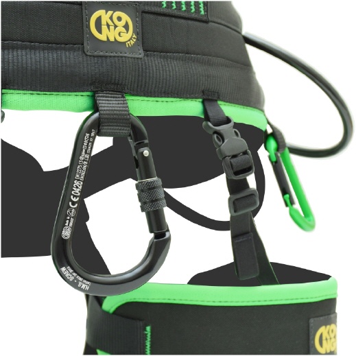 - große Schlaufe für den Transport eines Sackes (max. 50 kg). Leicht einzustellen und auszutauschen, mit zwei Aufhängepunkten entsprechend der Ergonomie des Benutzers. Kann, wenn nicht benötigt wird, an der Seite des Gurtes untergebracht werden.