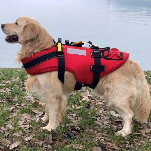 Entwickelt für Rettungshunde und nützlich für alle Hunde, die im Wasser oder auf einem Boot arbeiten.